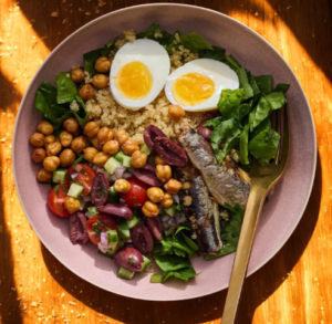 Omega-3 Rich: Heart-healthy fats from sardines, flax seeds, and almonds.